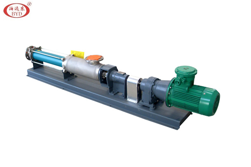 單螺桿泵是一種有構造方式的容積泵,主要由驅動電機及減速機、連軸桿及連桿箱、定子及轉子等部分組成。工作時轉子由電機驅動,在定子內作行星轉動,相互配合的轉子和定子的彈性襯套形成了幾個互不相通的密封空腔。由于轉子的轉動,密封空腔沿軸向由的吸入端向排出端方向運動,介質在空腔內連續地由吸入端輸向排出端。